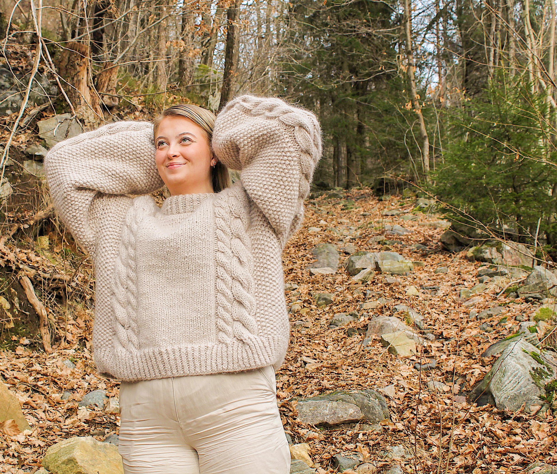 Brith genseren er oppkalt etter min bestemor Brith Faber. Det er ett smykke av en genser bestående av masse struktur: twister, perlestrikk og glattstrikk. Genseren gir ett nydelig inntrykk hvor strukturen er i god harmoni. Ett perfekt prosjekt om du ønsker å utfordre deg selv, liker å strikke struktur eller ønsker å ha ett gøy prosjekt som er vanskelig å legge fra seg. Oppskriften til Brith genseren beskriver de ulike sonene med struktur godt, så dette er ett prosjekt jeg tørr å påstå passer godt for nybegynnere også.