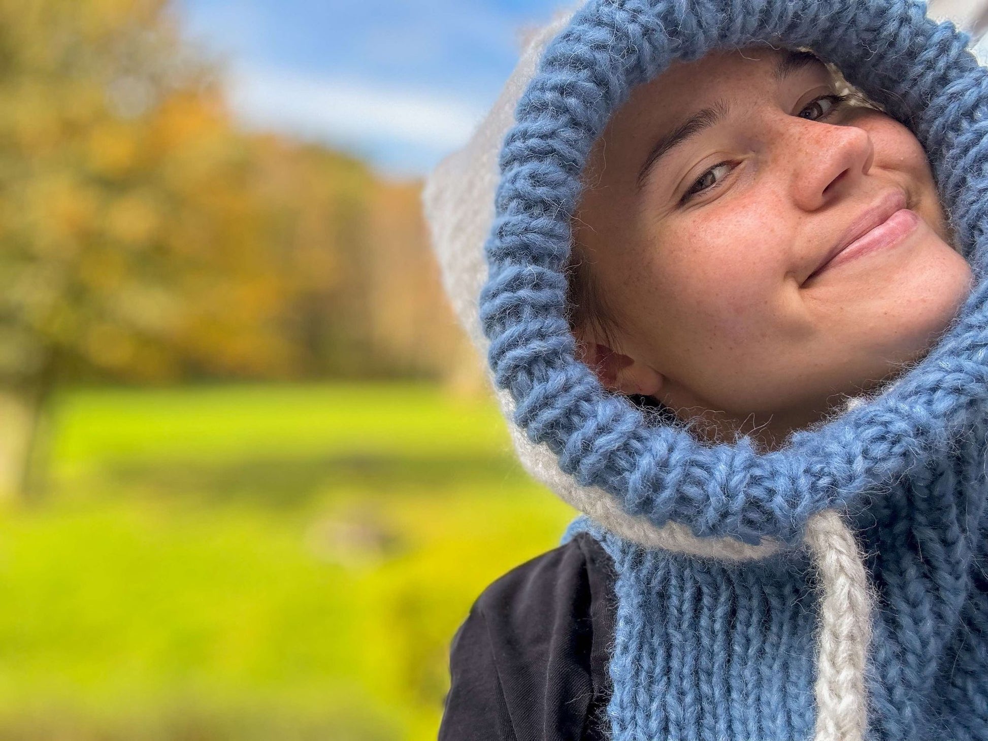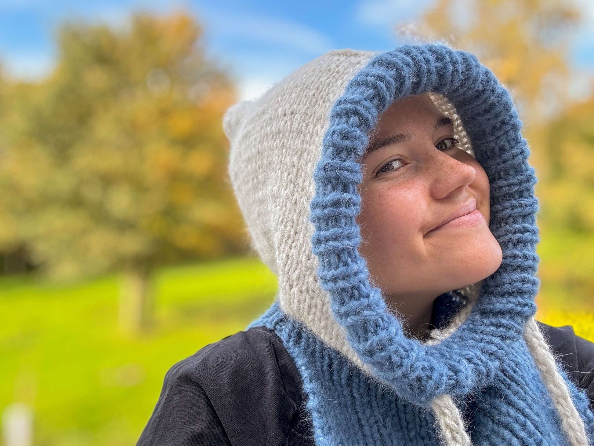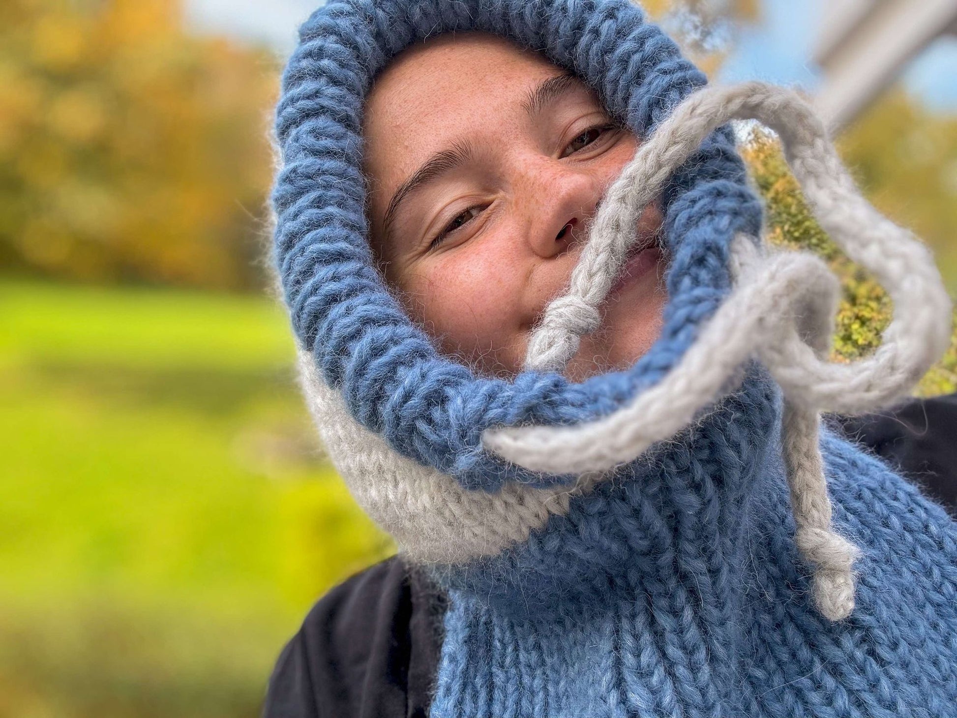 Hyggehetta er en enkel og koselig balaklava, perfekt for kalde vinterdager. Strikket med dobbeltråd i myk Alpaca Bris, gir denne hetten utmerket beskyttelse mot vind og kulde. Designet inkluderer en komfortabel hals med vrangbord og en justerbar snor som gjør det enkelt å tilpasse passformen. Hyggehetta er både praktisk og stilig, noe som gjør den til et must-have tilbehør i enhver vintergarderobe.