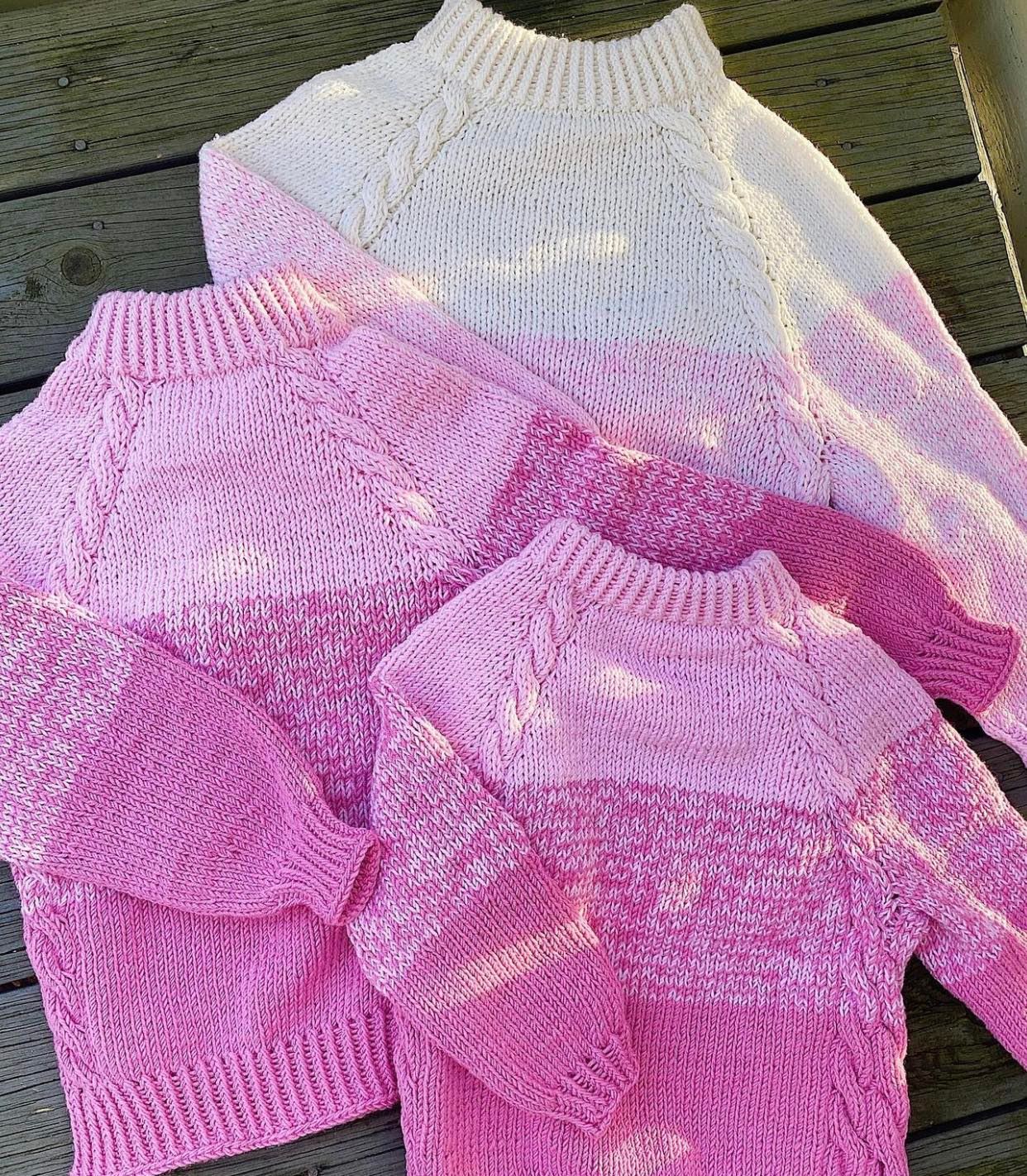 Sugartwist Sweater Mini er en sjarmerende og enkel genser til barn, med et unikt design som inkluderer raglanmasker og tre tvister på siden av bolen. Strikket i det luksuriøse Soft Merino-garnet fra Dale, gir genseren en myk og behagelig følelse som passer perfekt til de små. Genseren strikkes med dobbel tråd for ekstra varme og struktur, og er ideell for både hverdag og spesielle anledninger.